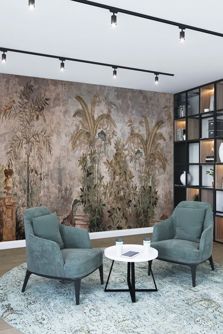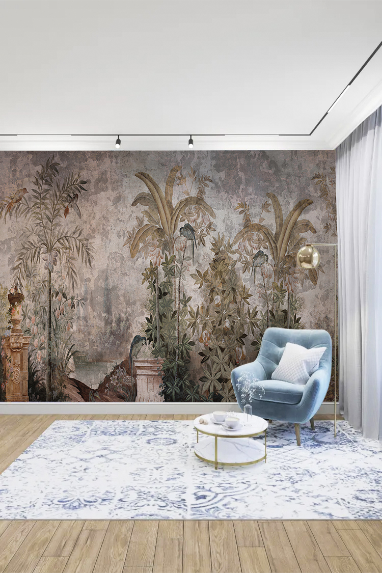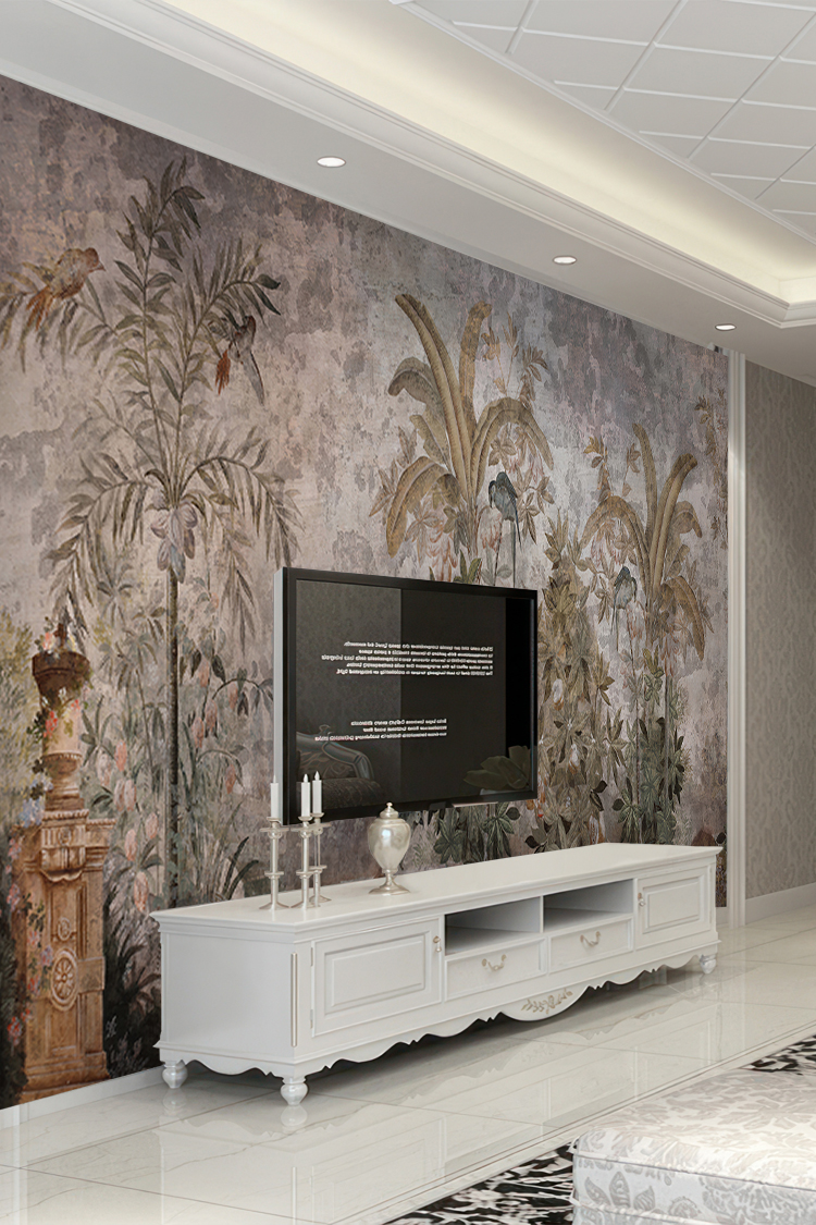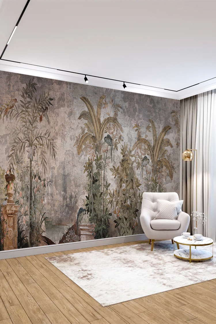 Vintage Tropikal Bitki Desenli Duvar Kağıdı