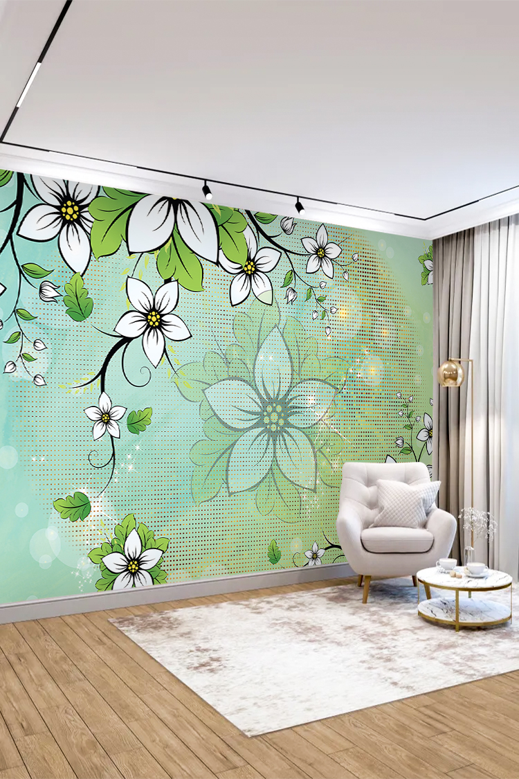 Yeşil Çiçek Desenli Duvar Kağıdı