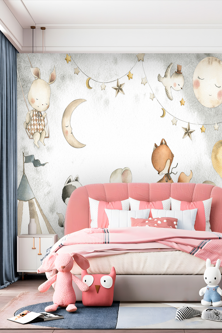 Yıldızlar ve Hayvanlar Temalı Duvar Kağıdı