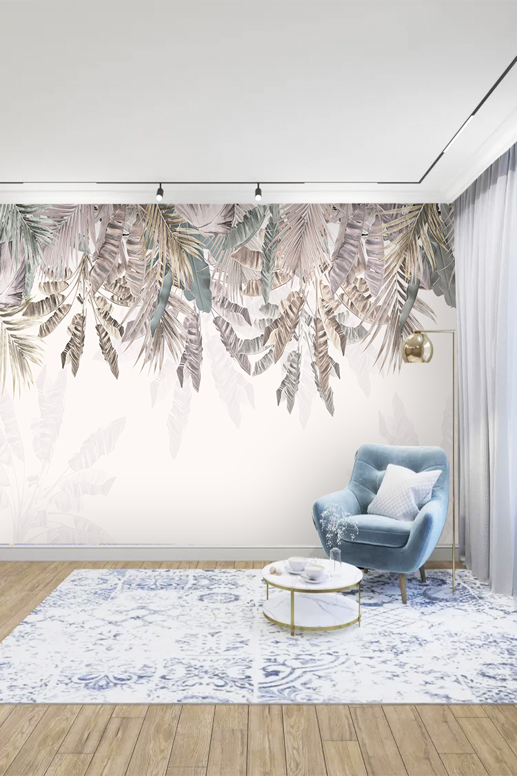 Yumuşak Tonlarda Palmiyelerle Şık ve Minimal Duvar Kağıdı