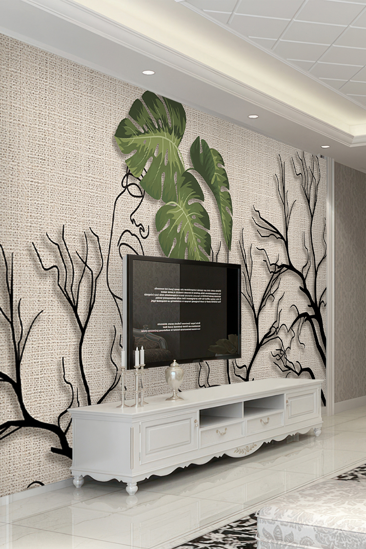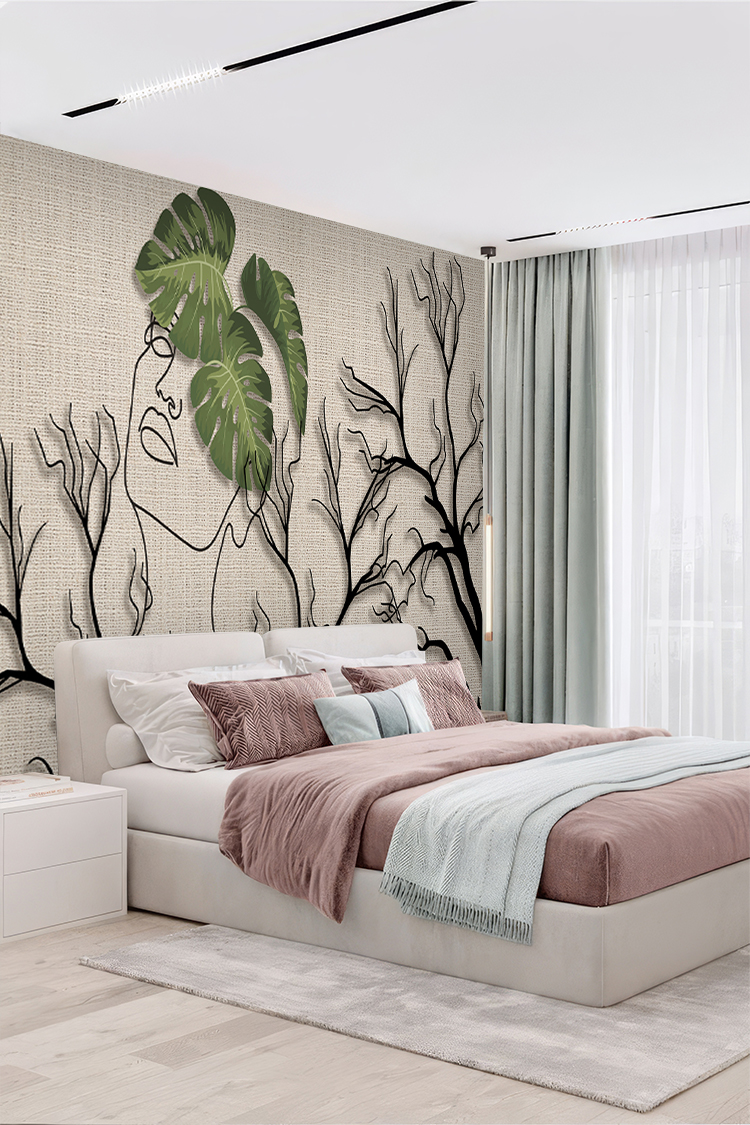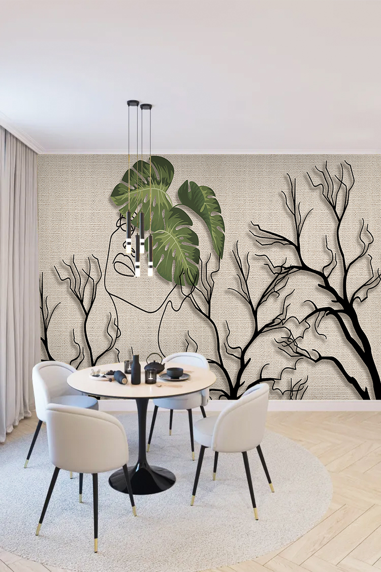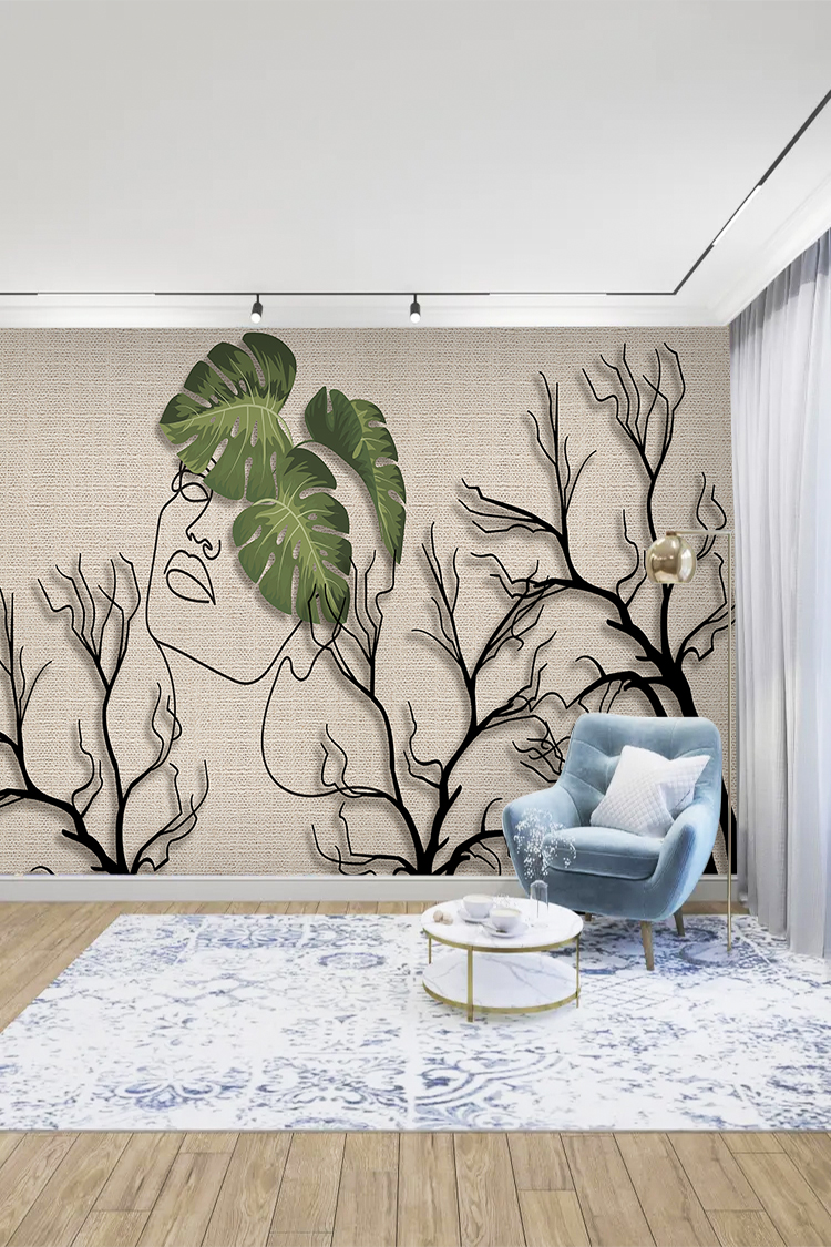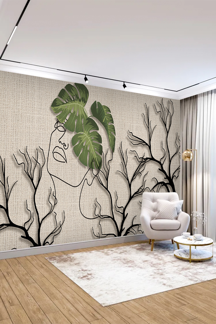 Yüz ve Doğal Yaprak Desenli Duvar Kağıdı