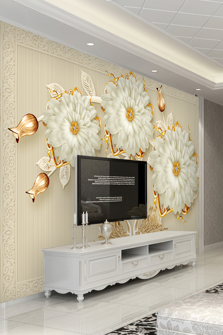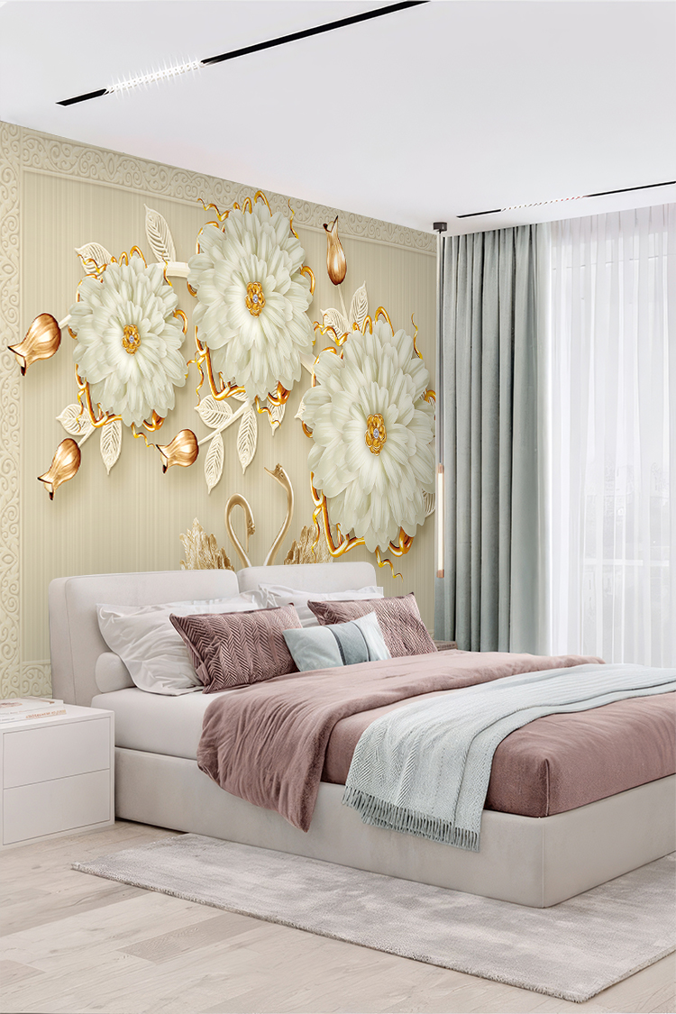 Zarif Altın Çiçek Desenli Lüks Duvar Kağıdı