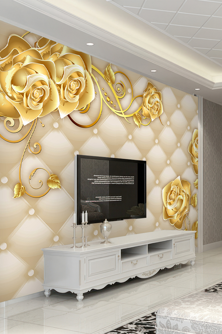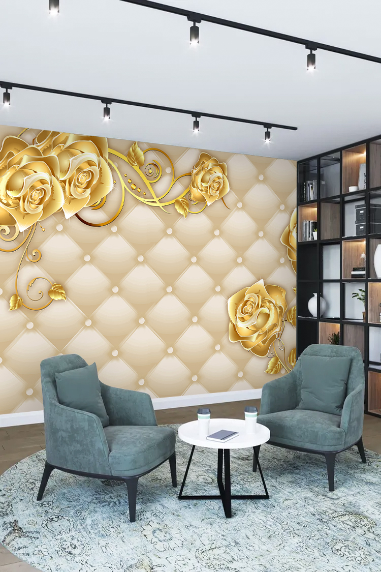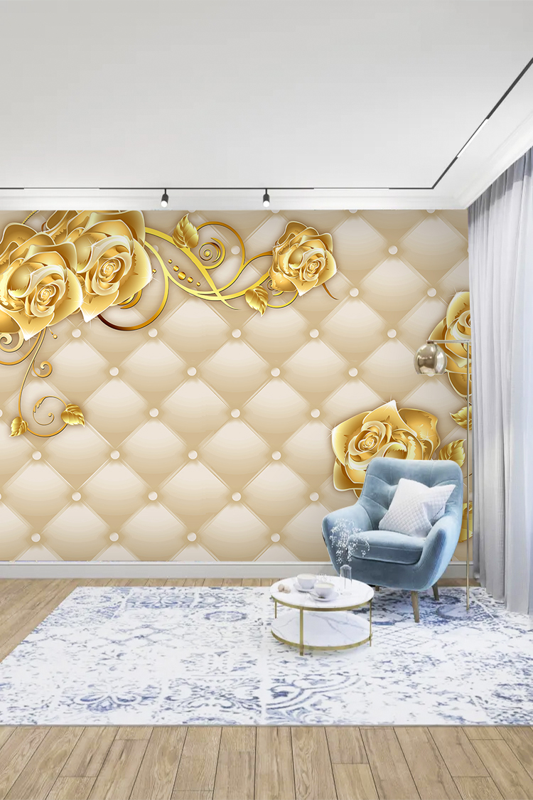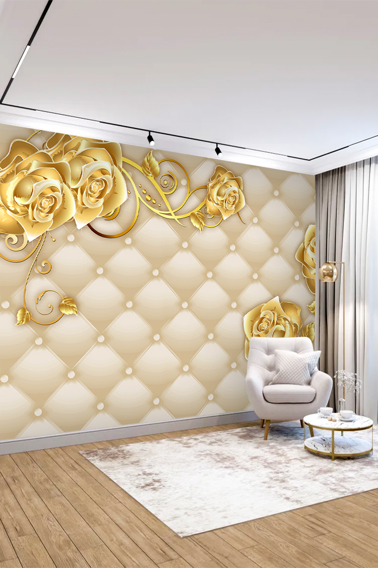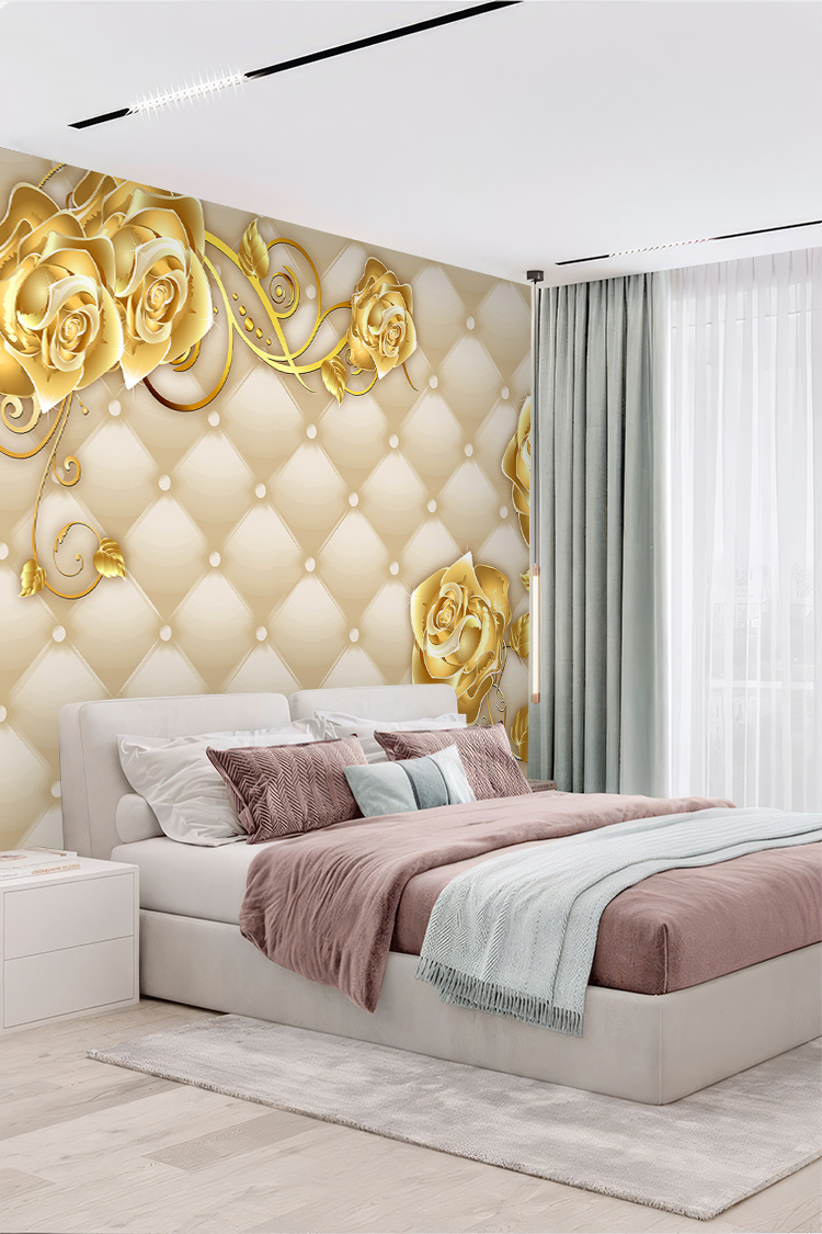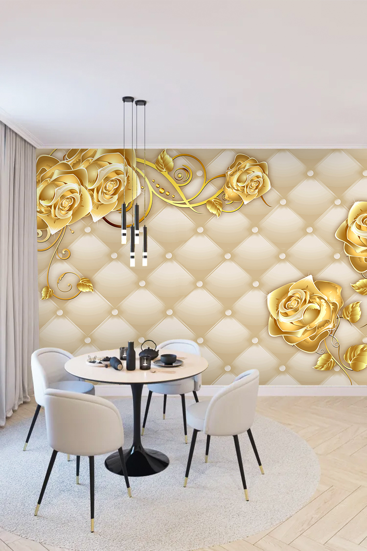 Zarif Altın Güller ve İncili Lüks Duvar Kağıdı