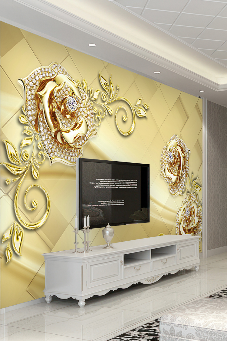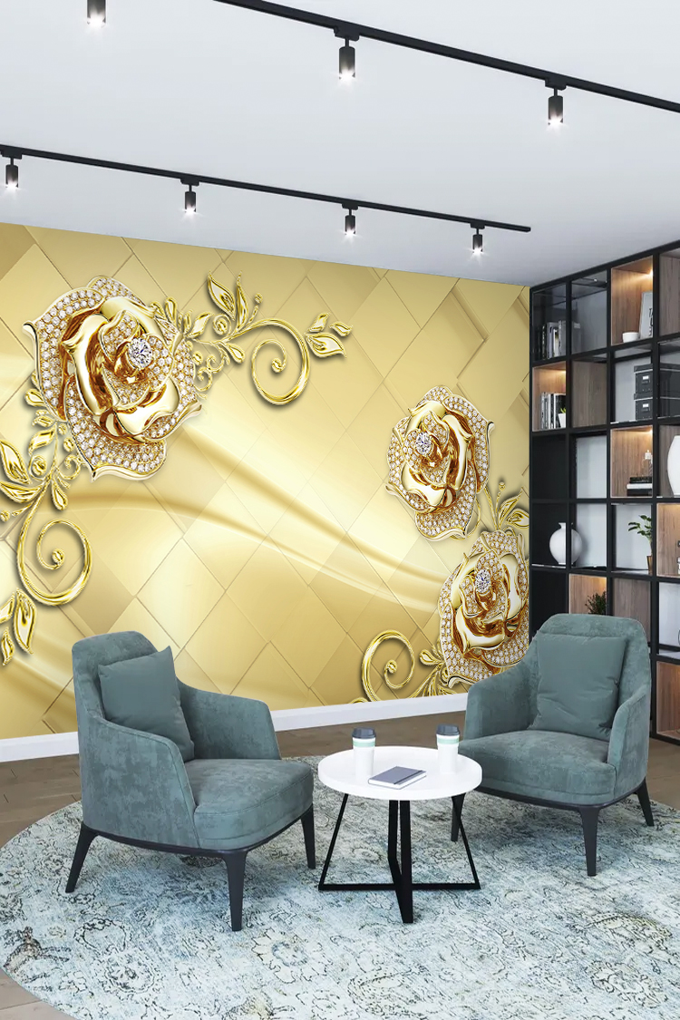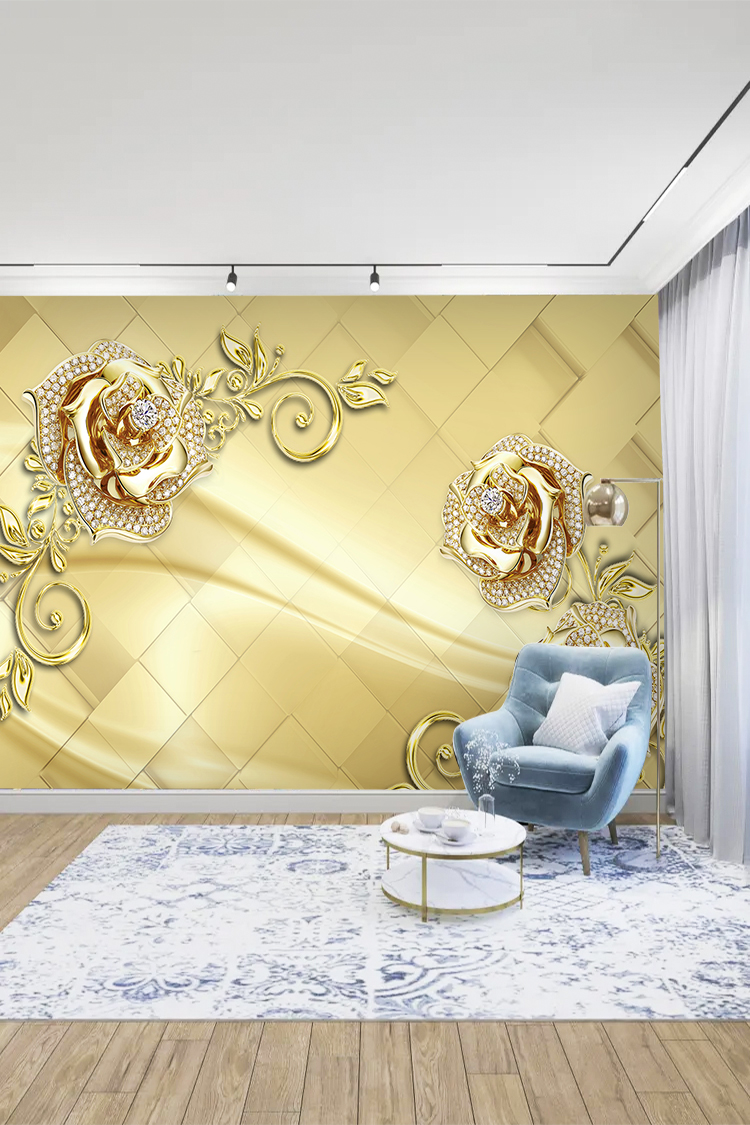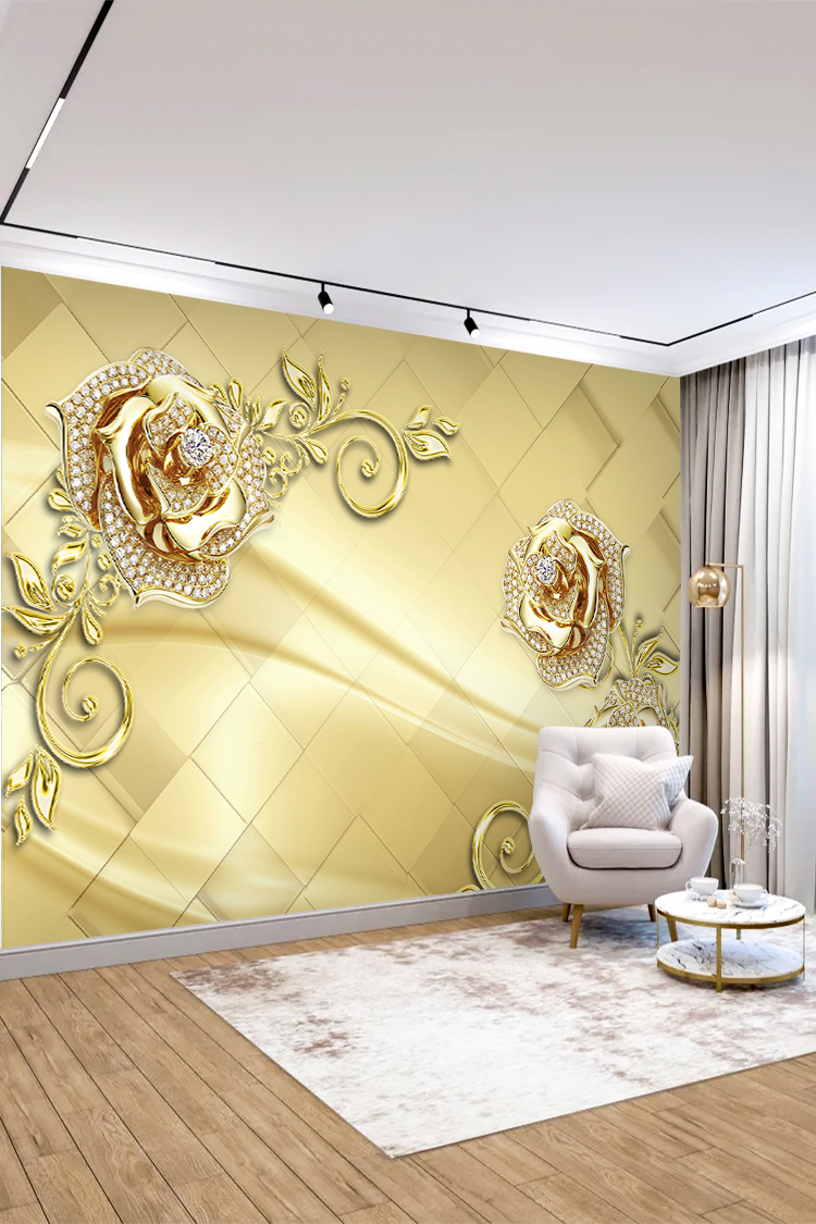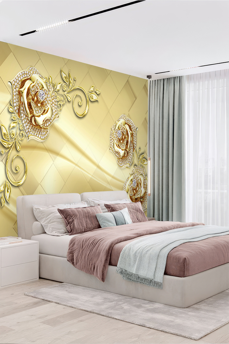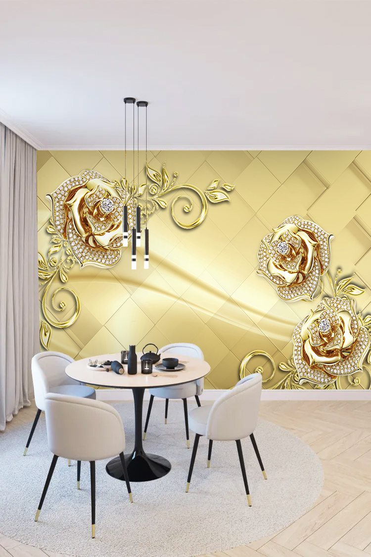 Zarif Altın ve İncili Gül Desenli Lüks Duvar Kağıdı