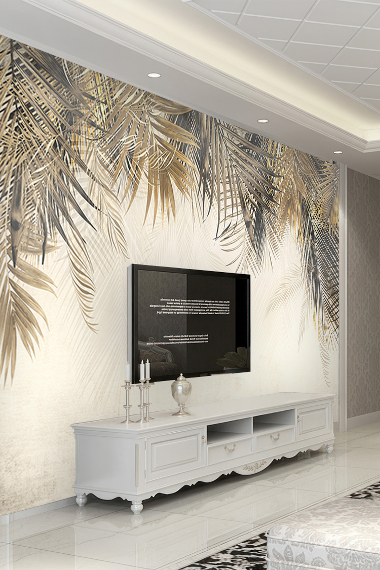 Zarif Altın Yaprak Desenli Şık Duvar Kağıdı