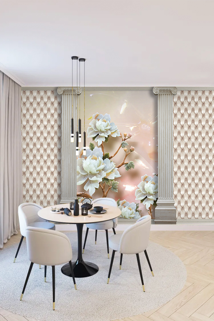 Zarif Beyaz Çiçek Desenli Duvar Kağıdı