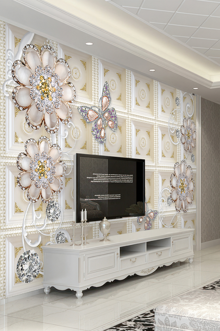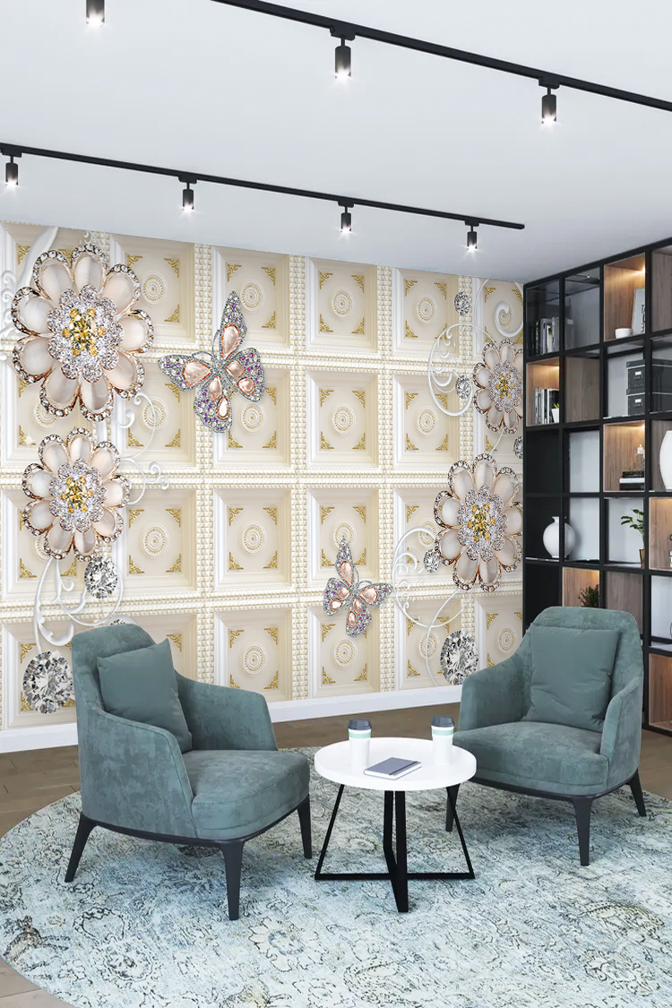 Zarif Çiçek ve Kelebek Desenli Lüks Duvar Kağıdı