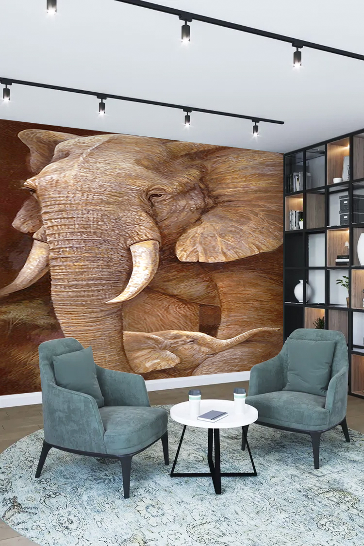 Zarif Fil Desenli Lüks Duvar Kağıdı